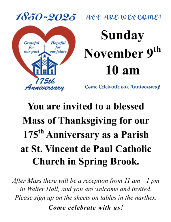 From the moment I arrived at St. Vincent de Paul in May of 2014, I have been humbled by the generosity and support offered by so many in our parish community. A parish is a community of believers, a spiritual family, there to support and love one another. It is a place to grow spiritually and to put your faith in action.